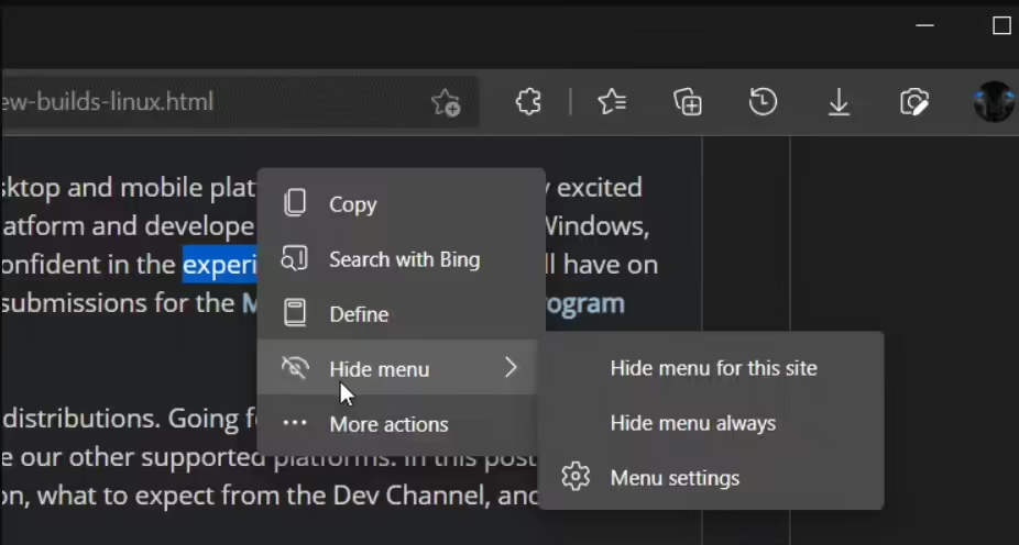 新版还整合了”标签页搜索”功能,帮助用户快速定位已打开或最近关闭的页面,并支持AI标签组整理。针对macOS用户,微软移除了选中文本时自动弹出的”迷你菜单”,相关策略QuickSearchShowMiniMenu也随之弃用。