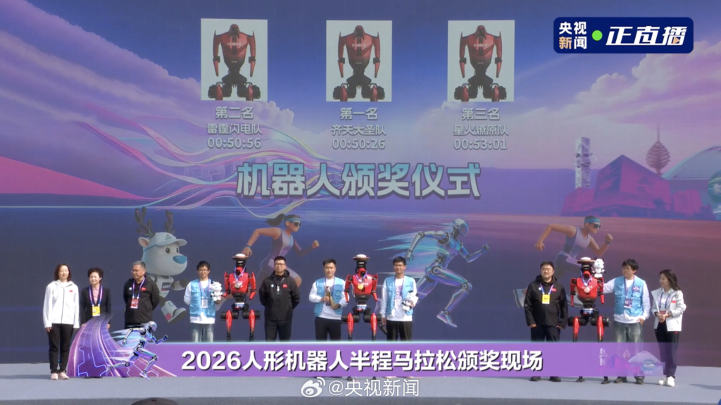 ITCOW牛新网 4月19日消息,在今日举行的2026北京亦庄半程马拉松暨人形机器人半程马拉松比赛中,搭载蓝思科技核心结构件的荣耀“闪电”机器人表现强势,包揽赛事冠、亚、季军,且完赛成绩均优于人类世界纪录(56分42秒),标志着人形机器人长距离运动稳定性取得关键突破。